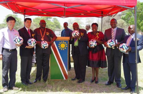 On the morning of 7th October, Chinese ambassador to Namibia Qi Shunkang attended football, schoolbag and study stationery donation ceremony by MCC19\'s invitation in conprehensive stadium of Katima Mulilo, Zambezi Province, Namibia.