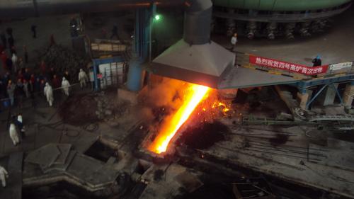 中國十九冶承建的首鋼水城鋼鐵集團有限公司四號高爐是在原燒結(jié)的拆遷基礎(chǔ)上新建一座2500立方米高爐。自2010年3月1日吊裝第一鉤開始,整個工程的建設(shè)歷時13個月。2011年3月29日上午9:00,四號高爐點火開爐。