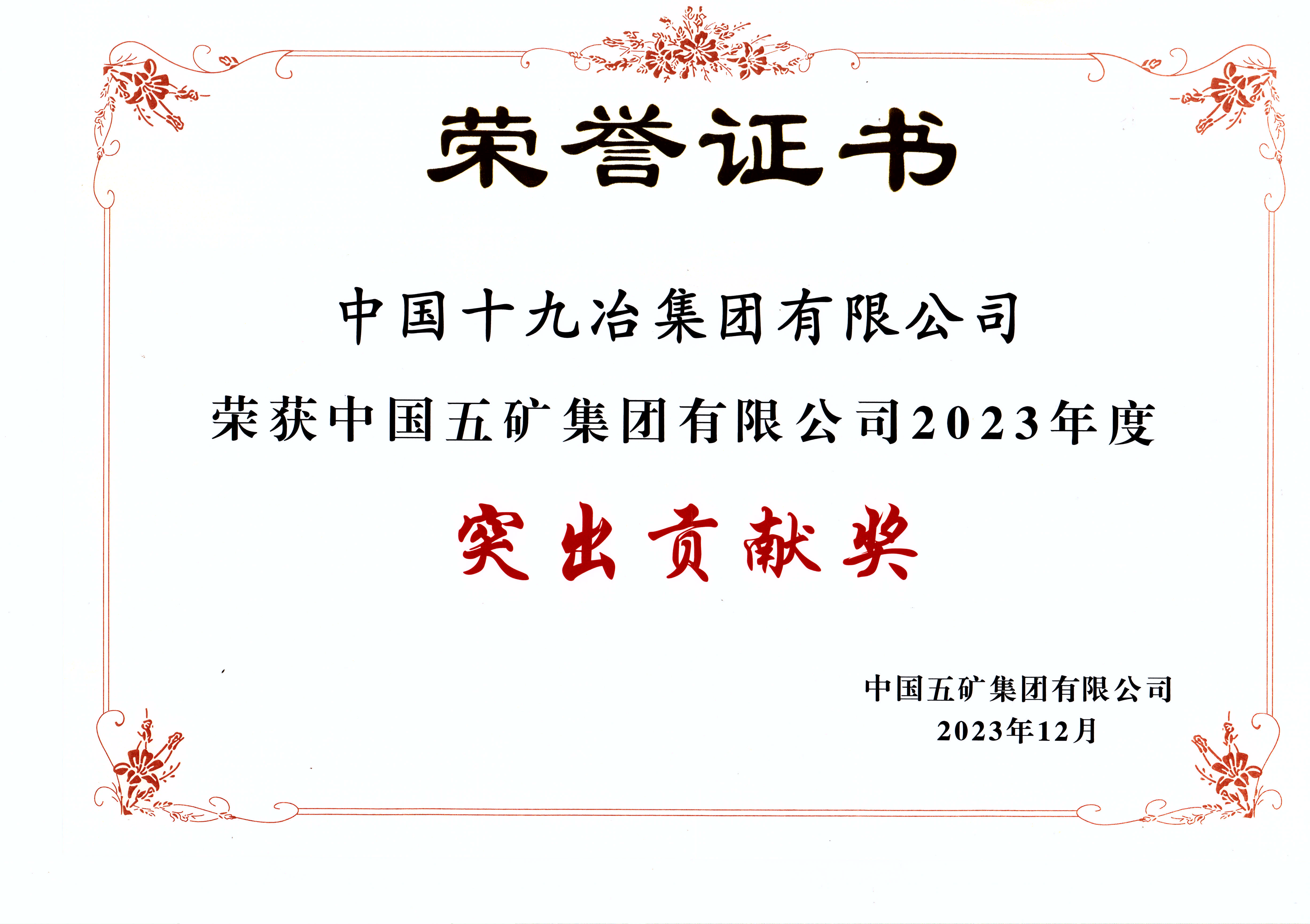 五礦集團(tuán)2023年度突出貢獻(xiàn)獎(jiǎng)